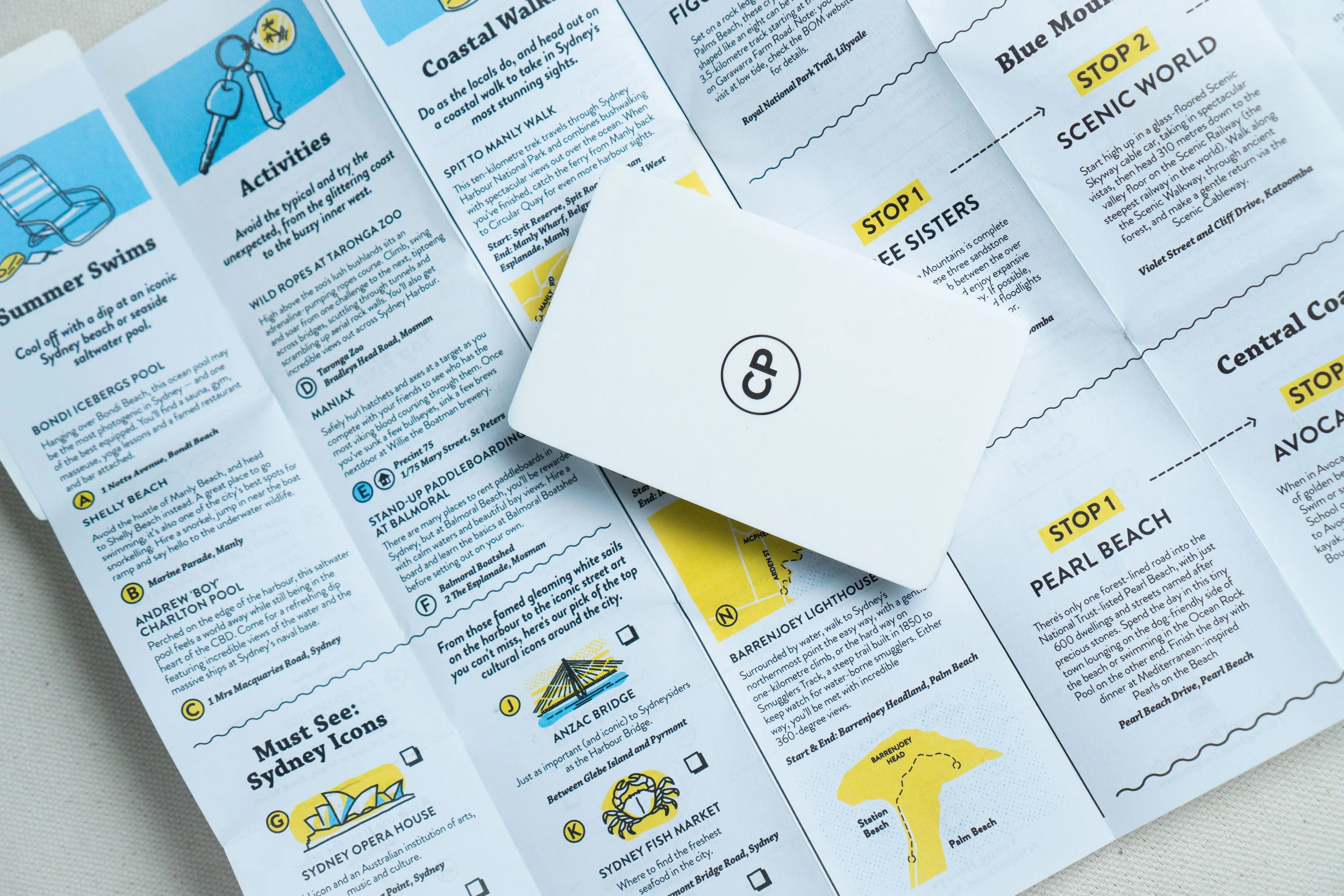 A guide produced in late 2019 for Concrete Playground and American Express - A folded guide with a dye cut keyhole sleeve.